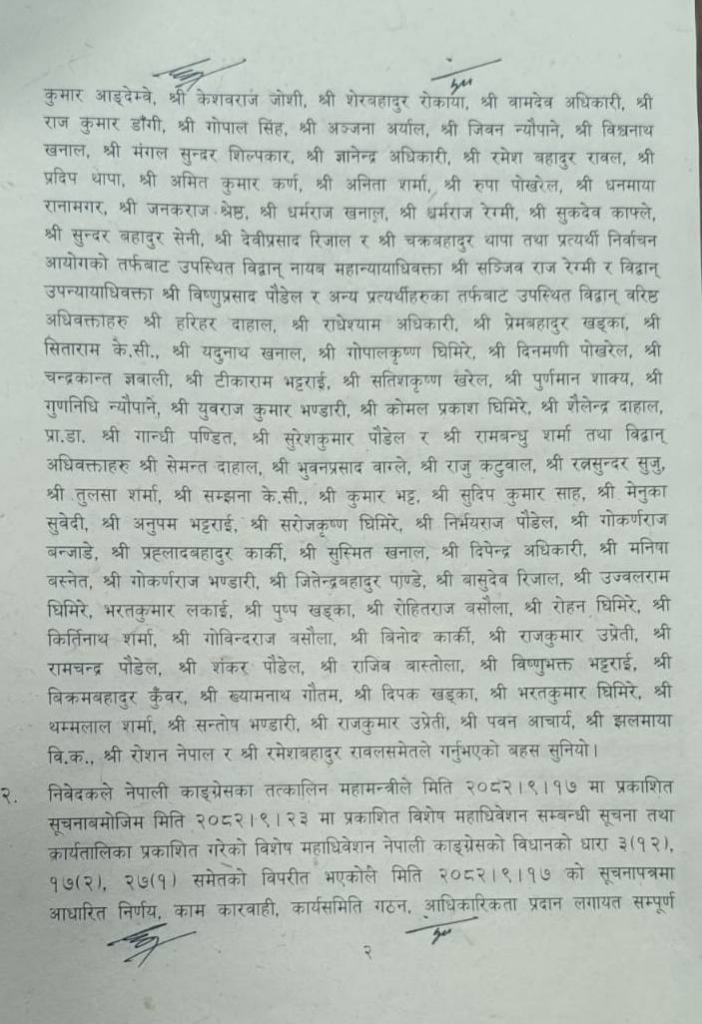 बिहीबार र शुक्रबारको सुनुवाइपछि न्यायाधिश शारङ्गा सुवेदी र नृपध्वज निरौलाको इजलासले यस्तो आदेश दिएसँगै माघबाट सुरु भएको कांग्रसको विवाद कानुनी रुपमै किनारा लागेको हो।